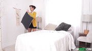 Молодая студентка-брюнетка попадает на урок разврата к своей опытной мачехе и её любовнику. Мамочка сначала показывает, как нужно правильно сосать ствол, после чего заставляет девочку повторить за ней. Вскоре мужик начинает отимевать обеих сучек по очереди. Студентка в юбке вскрикивает, когда болт впервые вонзается в её узкую, заросшую щелку, пока мачеха ласкает её клитор языком. Этот инцест-тройничок наполнен звуками влажного куни и глубокого траха, пока обе женщины не кончают в один голос.