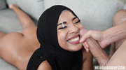 Студентка-мусульманка в хиджабе решилась на секс с белым однокурсником. Она нарочно показала ему свою волосатую киску, соблазняя парня. Он с жадной силой загнал член в ее влажную вагину и начал долбить ее с бешеной скоростью. Цыпочка стонала, цепляясь за него, забыв о всякой морали. Он закончил, излив обильный камшот ей на живот, завершая акт в университетском общежитии.