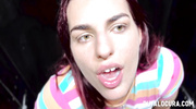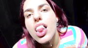Горячая неформалка с красными волосами пришла в специальное заведение, где стала хвастаться прелестями в трусиках и топике. Цыпочка легко возбудила толпу мужиков и начала сосать им прямо через дырки в колготках. Потаскушка без остановки заглатывала болты по самые гланды и дополнительно работала ручками, пока в итоге не угостилась вкусной и горячей спермой.