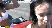 За городом пикаперы напоили студенток и сунули им члены в рты. Сучки заглатывали стволы, хлюпая от усердия, и раздвинули бёдра. Парни долбили их киски в машине, пока телочки не застонали от оргазма. Сперма хлынула в их рты, и крошки вытерли лица, хрипя от кайфа. Они легли, наслаждаясь оргазмом.