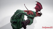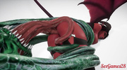 Девушка-суккуб трахается с монстром, у которого много членов
