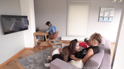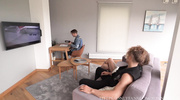 Пока муж-куколд покорно наблюдает из угла, его татуированная жена полностью отдается во власть соседа. Парень вонзает свой массивный ствол в её узкую щелочку, начиная жестко иметь брюнетку прямо на глазах у супруга. Девка стонет и бросает на мужа издевательские взгляды, пока болт сочно хлюпает в её вагине при каждом выпаде. Пот блестит на её татуировках, а темп траха нарастает, заставляя сучку выгибаться дугой от нереальной глубины проникновения. Она жадно вбирает каждый сантиметр чужого инструмента, доказывая свою неверность каждым вскриком.