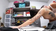 Худенькая бестия с дерзкими татуировками попалась на горячем, но вместо наказания она превращает допрос в марафон похоти. Её алчные губки скользят по твёрдому члену охранника, а потом она с жаждой впускает его глубоко в свою влажную киску. Стоны, страсть и бурный оргазм — смотри, как наказание становится настоящим взрывом наслаждения!