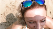 Чтобы отблагодарить мужика за то, что отвез ее на море, красивая блондинка начала демонстрировать прелести в купальнике. Немка легко возбудила мужика и, не обращая внимание на съемку от первого лица и других отдыхающих, начала сосать член. После слюнявого отсоса грудастая сучка отдалась в вагину и по-настоящему кончила.