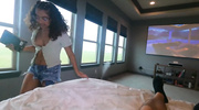 Мулатка сняла шортики, дразня парня своей сочной попкой, и камера поймала каждый её изгиб. Она раздвинула ноги, позволяя ему вылизать её волосатую киску, пока она не застонала. Он вонзил член, заставляя её кричать от кайфа, а шлепки гремели в комнате. Её тело блестело, когда она кончила, сжимая его. Он оставил сперму на её попке, и она, хихикая, провела по ней пальцем.