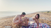 На пляже худая брюнетка дразнит парня, игнорируя окна рыбацкого дома. Приспустив трусики, она раздвигает бёдра, и его член врывается в её влажную киску. Стоны сливаются с шумом волн, пока она шепчет о риске быть замеченной. Её худое тело дрожит от толчков, а похоть бьёт через край. Оргазм накрывает её, заставляя вцепиться в песок. Сперма заливает её живот, и она нежно гладит себя, наслаждаясь публичным экстазом.