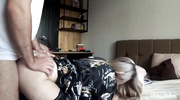 Блондинка-мачеха в чулках тянется к болту чувака, шепча пошлости. Горячая сучка в очках заглатывает ствол, слюнявя его в POV. Он вбивает член в её сочную киску, долбя раком с жаром. Её тело содрогается от оргазмов, а дырочка обхватывает член. Она ласкает клитор, ускоряя кайф. Сперма заливает её рот, и она глотает капли. Мачеха угостилась спермой, наслаждаясь запретным трахом.