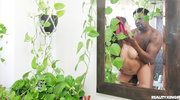 Выйдя из ванны, Tru Kait оказывается в руках негра с гигантским агрегатом. Черный мужик прижимает жопастую брюнетку к стене и вбивает свой черный ствол в её волосатую киску. Крупным планом видно, как темная плоть растягивает нежные губки сучки. Tru Kait стонет на всю квартиру, пока негр до основания пронзает её нутро. Всё заканчивается густым кремпаем, когда черное семя медленно вытекает из её переполненной дырочки.