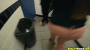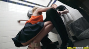 Озорная красотка ловит официанта взглядом и без стеснения дразнит его аппетитной грудью. Её игривый шёпот и смелые прикосновения заводят парня до предела — он не может устоять и следует за ней в укромный уголок. Там она становится на колени, жадно лаская его твёрдый член губами, а потом сгорает от желания, когда он наполняет её влажную киску. Их страсть взрывается в тесном туалете — смотри, как милашка ловит оргазм, о котором мечтала тайно!