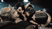 Толпа красоток легко возбудила мужика и организовала групповой секс. Развратные штучки сразу встали на колени и начали дрочить извращенцу. После предварительных ласк цыпочки принялись сосать член и заглатывали его по самые гланды без остановки, пока в итоге не угостились вкусной спермой прямо перед включенной камерой.