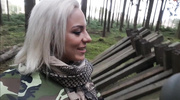 Горячая телочка из военных показала сочную попку и легко возбудила солдата. Блондинка нарвалась на секс прямо на природе и тут же начала работать ртом. Когда беленькая сучка смочила болт слюнями, она отодвинула боди в сторону и дала оттрахать влажную и узкую пилотку, да так, что мигом достигла бурного финала.