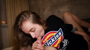 Девчонка в узких стрингах извивается под партнером, получая серию ярких оргазмов от глубокого траха в вагину. Парень дрючит её от первого лица, фиксируя крупным планом момент пика. Когда страсть доходит до предела, пацан вынимает член и щедро заливает личико красотки густой спермой. Блондинка жадно слизывает капли с губ, демонстрируя на камеру следы недавнего извержения и своё полное удовлетворение процессом.